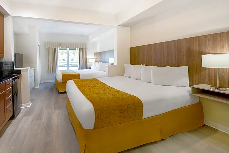 This suite includes a microwave and small refrigerator. A living area with sofa bed are also included.